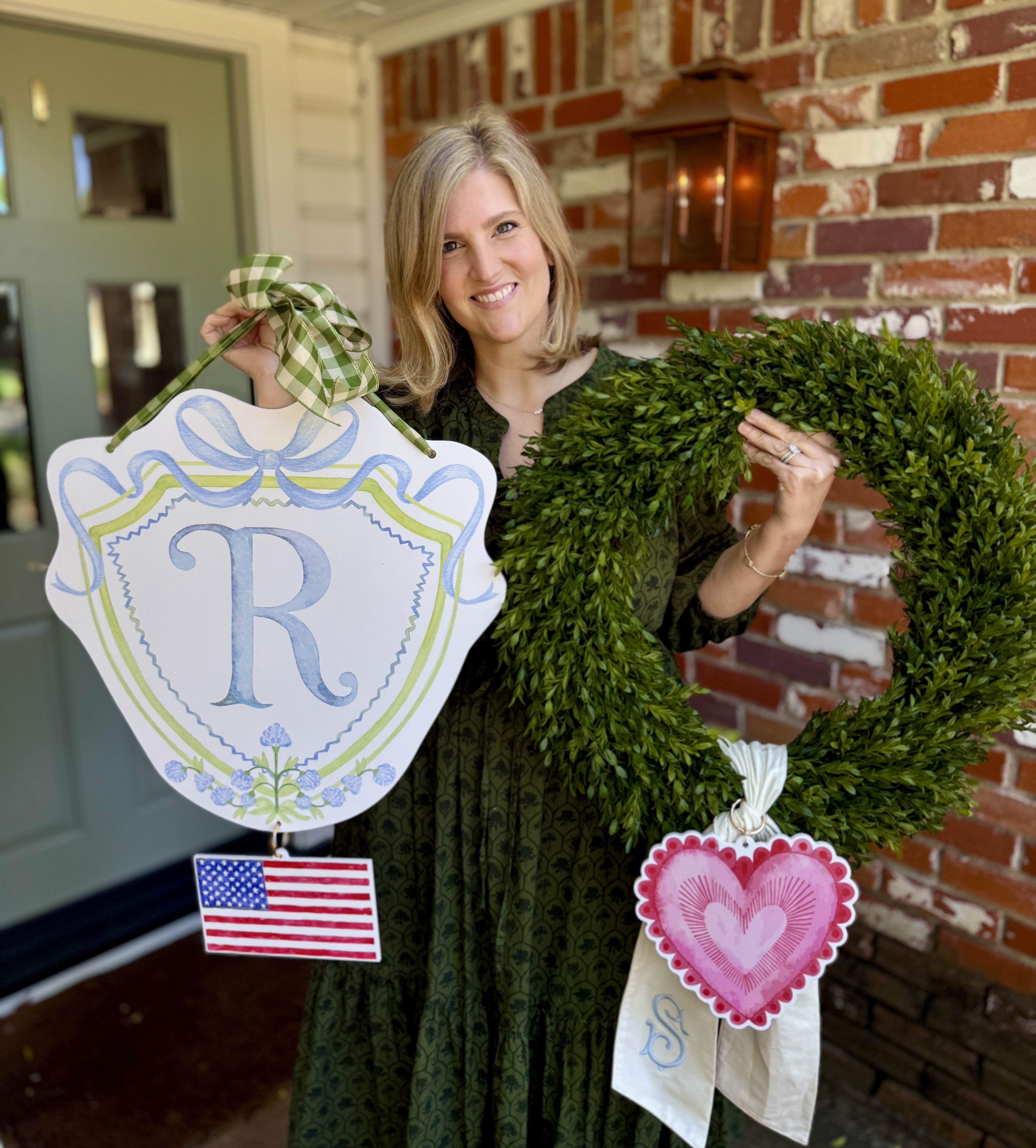 Simply attach our Wreath Charms™ to any sash, bow, ribbons, or directly to the wreath. Pair your custom Crest Charm Door Hanger with your favorite interchangeable Crest Charms™. All with an easy clip on ring.